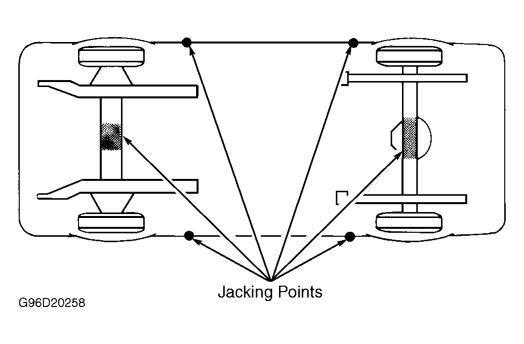 Illustration is not intended to represent exact structure of each vehicle's frame, underbody or body outline. Illustration is presented only to give a point of reference. See