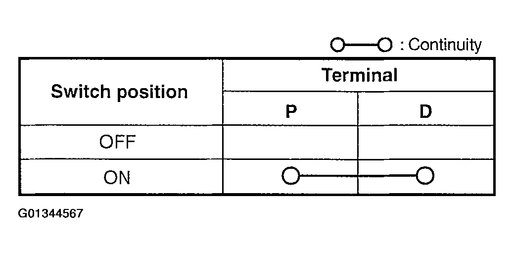 4. Verify that the continuity between the light switch terminals is as indicated. See Fig 1.