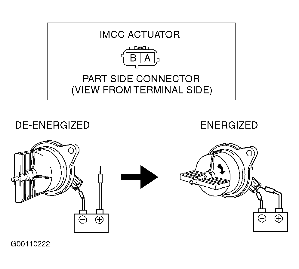 Intake Manifold Communication Control (IMCC) actuator valve opens above 3750 RPM and closes again above 5500 RPM. Valve is normally closed. Using NGS scan tool, check for DTCs. If DTC P0660 is present, see DTC P0660: INTAKE MANIFOLD COMMUNICATION CONTROL testing procedure in SELF-DIAGNOSTICS - MPV article. If DTC P0660 is not present, check IMCC actuator operation. Remove IMCC actuator. Using fused jumper wires, connect battery voltage to IMCC connector terminals. Ensure actuator operates properly. See Fig 1 . If IMCC actuator does not operate as specified, replace IMCC actuator. If IMCC actuator operates as specified, check for open or short circuit. Disconnect PCM, IMCC actuator and main relay harness connectors and check for open circuit in wire harness: