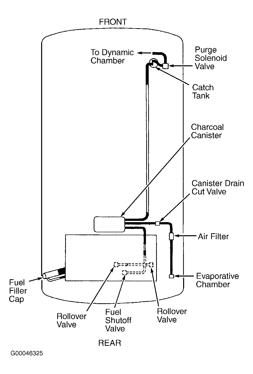 Purge system operation takes place when vehicle is accelerating in gear (off idle), engine is at operating temperature and HO2S is functioning normally. Ensure all vapor lines are connected and in acceptable condition. See Fig 1 or Fig 4 .