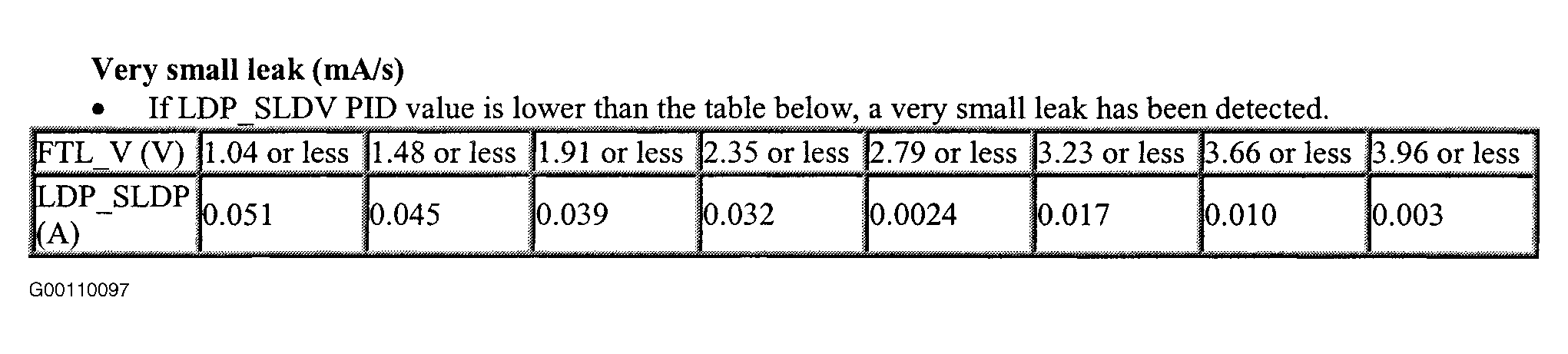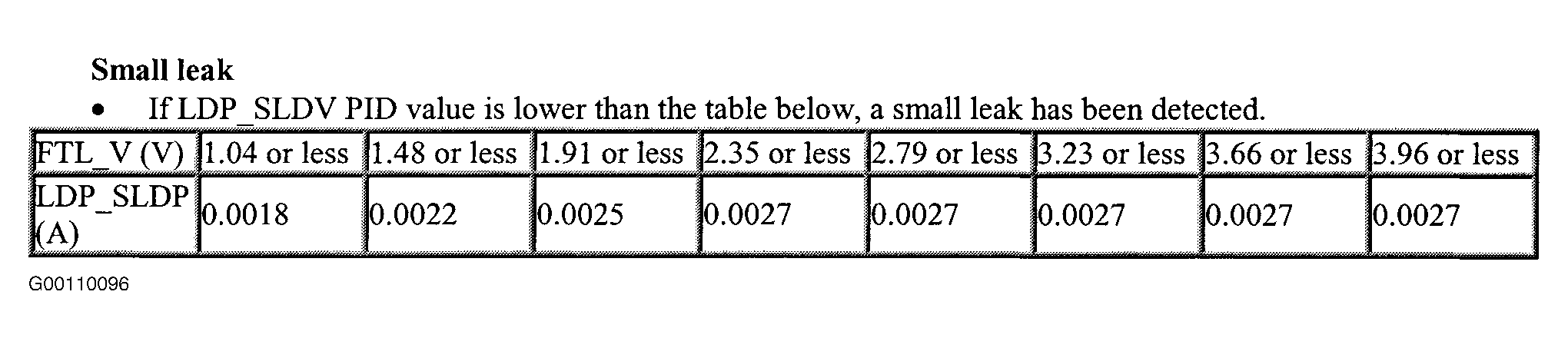 3. Check LDP_SLDV PID value. If LDP_SLDV PID value is lower than specified in Fig 1 and Fig 2 , perform appropriate test: