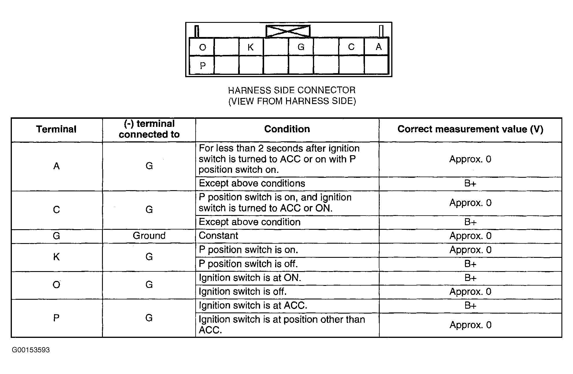 Fig 1: Key Lock Control Unit Pin Voltage Inspection Chart