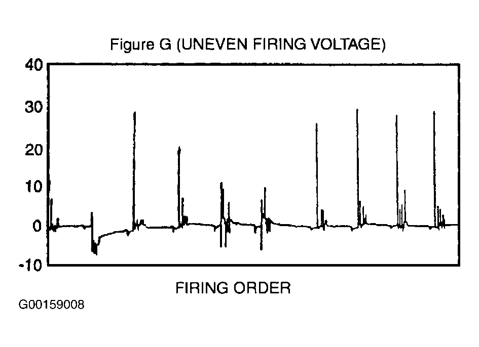 6. Check For Normal Ignition Pattern -  With KOER, check spark plug firing voltage average and evenness of patterns. Refer to Fig 2 . If patterns are even and average value of spark plug firing voltage is 20 kilovolts or more with evenness of spark plug firing voltage within 8 kilovolts or less, proceed as follows: