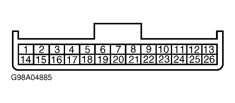 Fig 1: 84-Pin In-Line Harness Connector X-201 Terminals (Male Half Of Connector Shown)