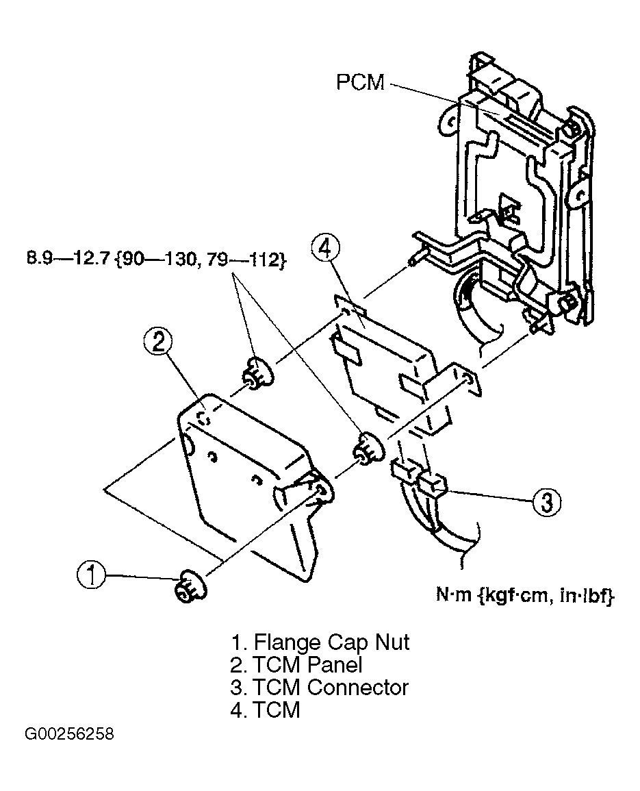 2. Remove the Transmission Control Module (TCM) in the following order: