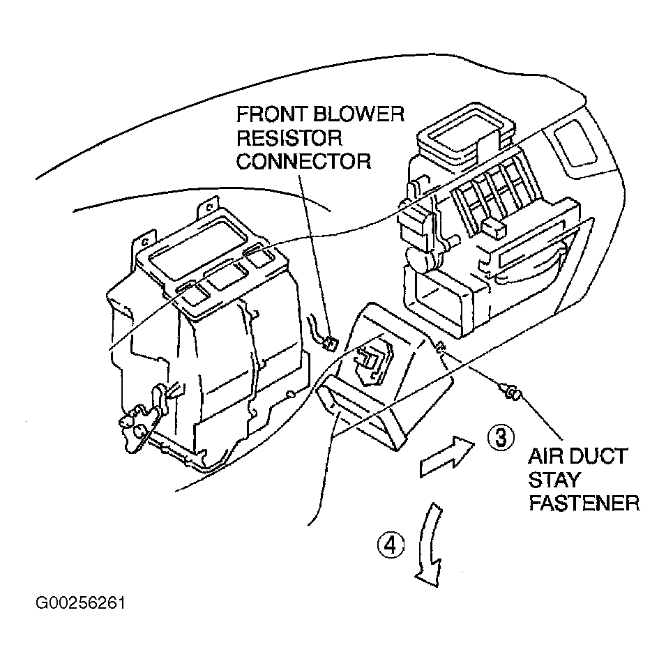 1. Disconnect the front blower resistor harness connector. See Fig 4.