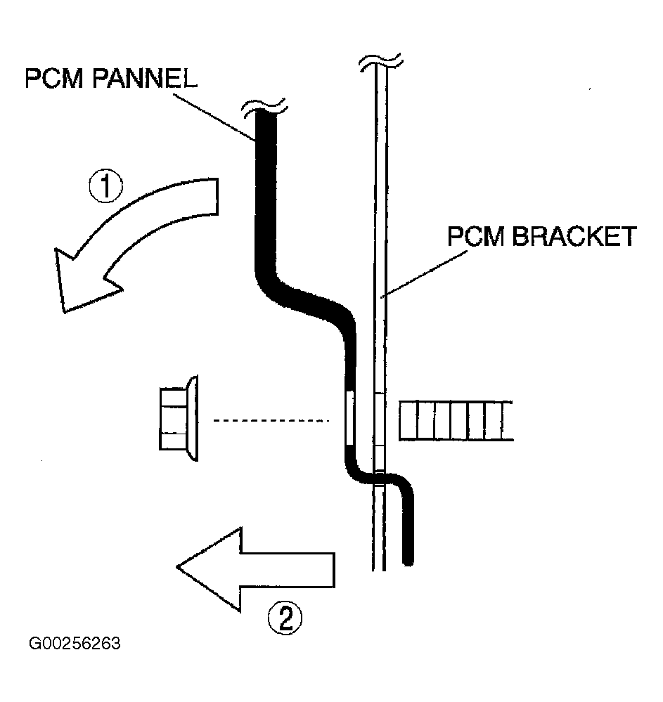 1. Pull the PCM harness connector stay fastener out from the PCM panel.