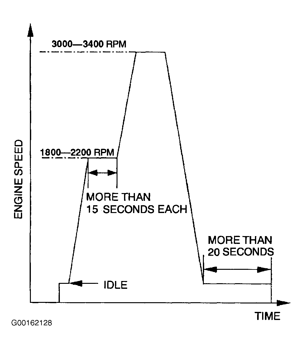 - Race engine speed as shown in graph. See Fig 1. Then idle engine for more than 20 seconds, after cooling fan has stopped. If possible, monitor RPM PID for engine speed and FAN1 PID (without A/C) or FAN2 PID (with A/C) for cooling fan status during this procedure.