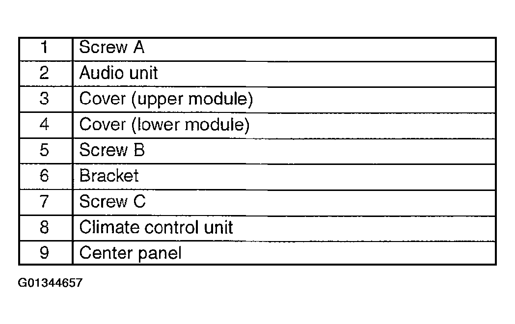 Fig 1: Disassembly Order Of Center Panel Module
