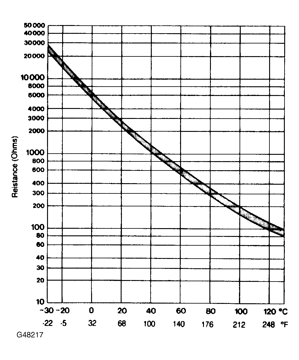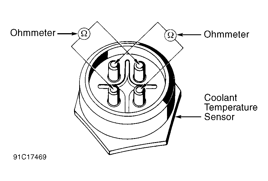 - Unplug coolant temperature sensor. Test resistance across sensor terminals and refer to chart for specification. See Figure and Figure. Test resistance at 2 different coolant temperatures. If resistance is not within specifications, replace coolant temperature sensor. If resistance values are okay, go to next step.