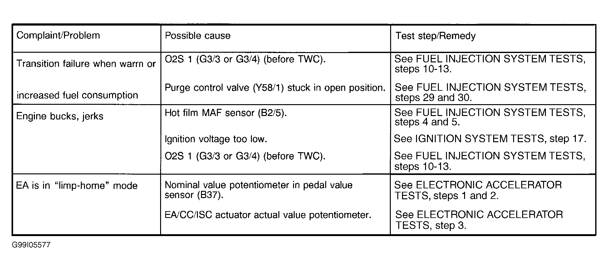 Home >> Mercedes Benz >> 2000 >> ML320 >> Repair and Diagnosis >> Engine Performance >> System >> Engine Controls - Self-Diagnostics With Codes >> Diagnostic Trouble Code Identification >> Symptom Diagnostics