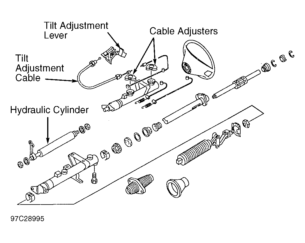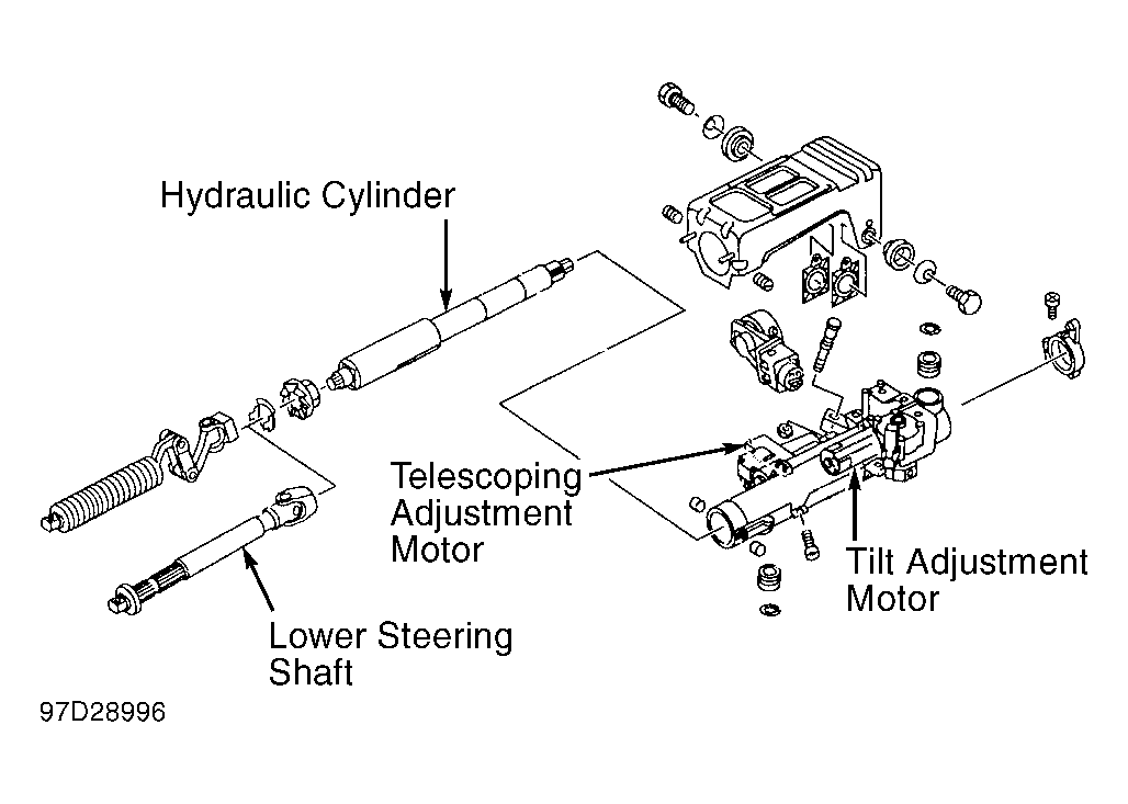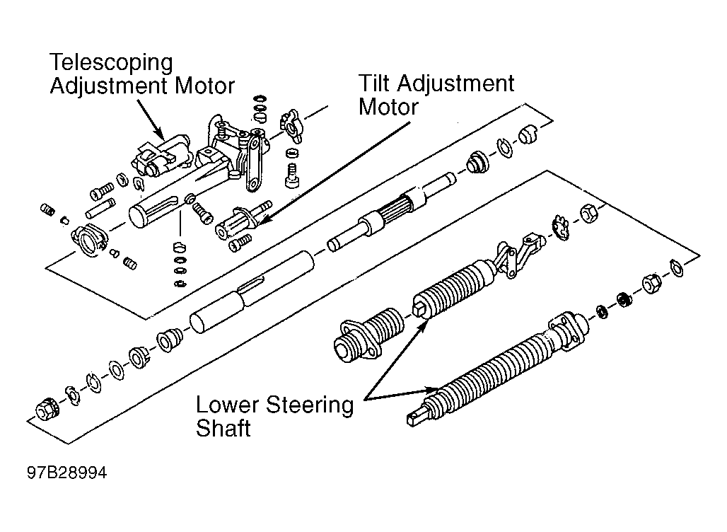 Fig 1: Identifying Manual Adjustment Steering Column Components (C230, C280, CLK320, S320, S420, S500 & SLK230)