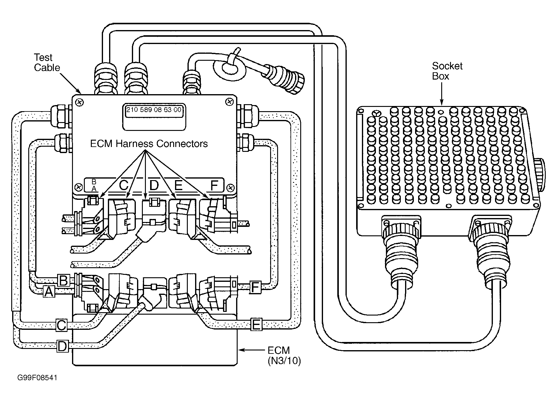 Manufacturer recommends using Socket Box (129 589 00 21 00) for making measurements to prevent damage to electrical connectors and terminals. See Fig 1 . Manufacturer identifies all system components with an alphanumeric identification (i.e., N3/10 is for ME-SFI control module).
