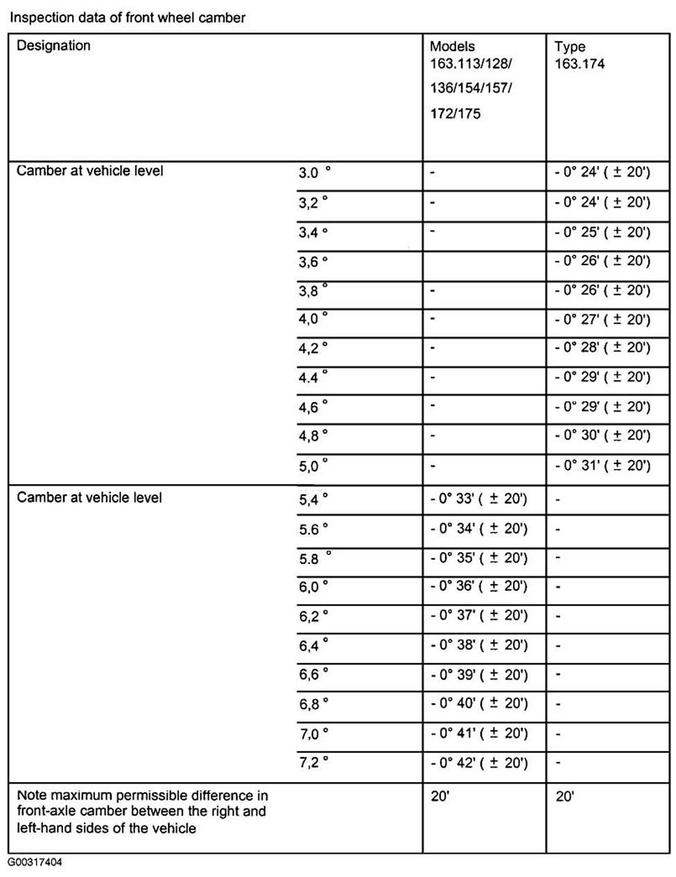 | Front Axle Toe-In | 0° 20' | +/-10' | ||||||||||