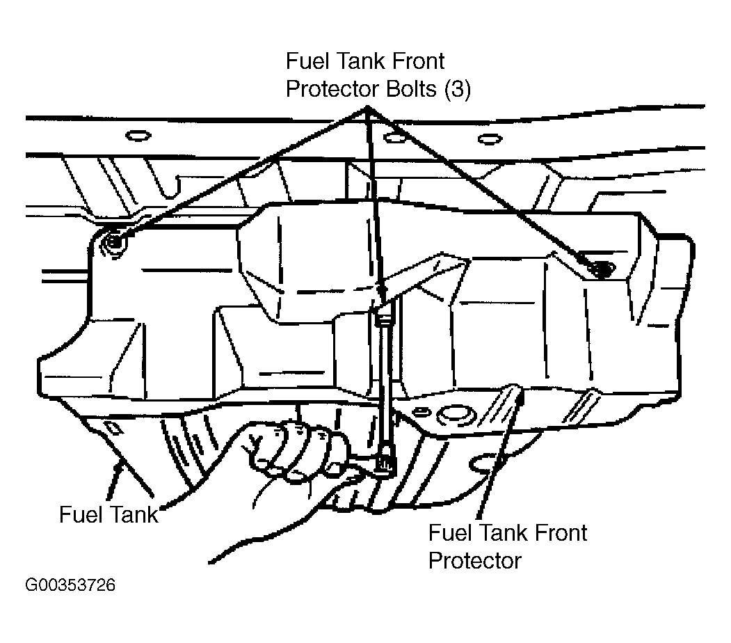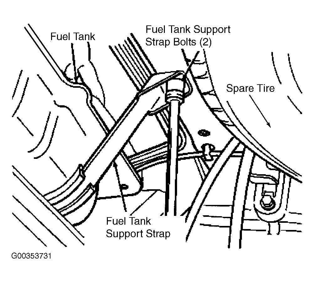 - Place a jack under the fuel tank to support it when the fuel tank support straps are removed.