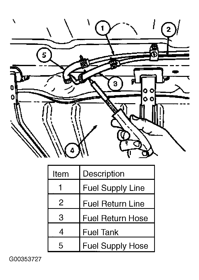 - Loosen the fuel return hose clamp and slide it away from the fuel return hose connection. See Fig 4