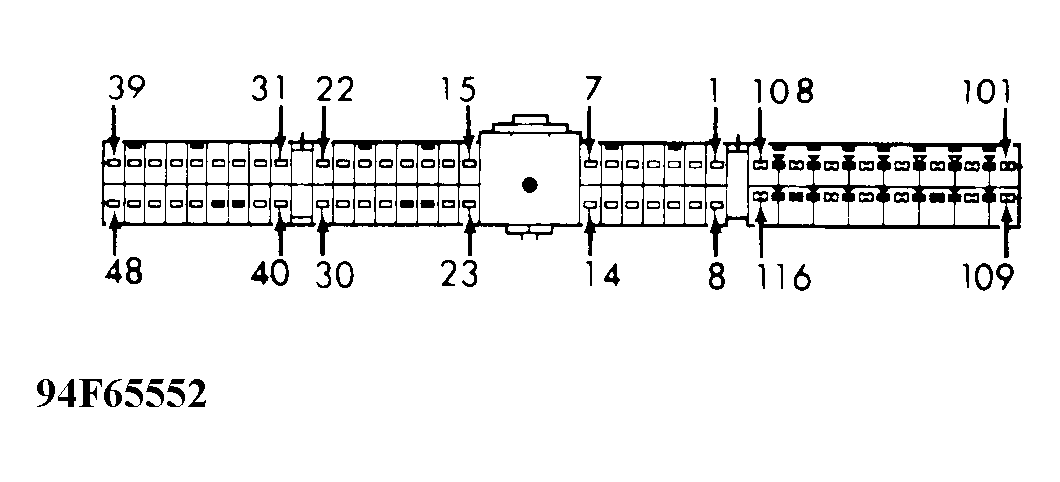 - Using a DVOM, check for continuity to ground on PCM terminals No. 6, 13, 39, 48, 107, 108 and 116. See Figure . Resistance should be zero ohms. If resistance is not zero ohms, repair open to ground.