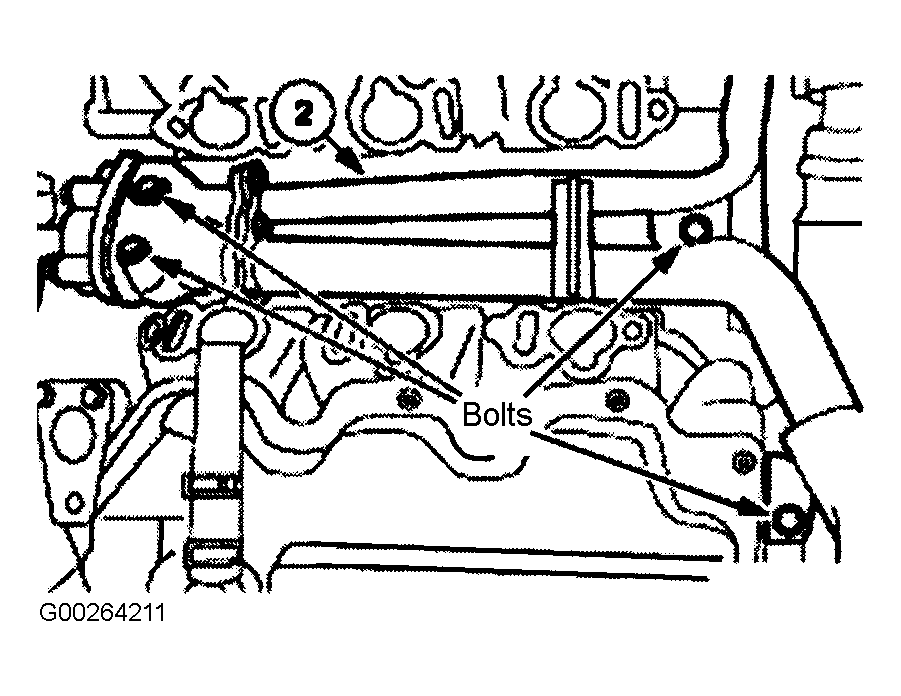 Remove the lower intake manifold. See REMOVAL & INSTALLATION in 3.0L SOHC V6 - VIN (W) article in ENGINES. Disconnect the heater core hose from the coolant crossover tube. Release the clamp and remove the lower radiator hose from the coolant crossover tube. Remove the water bypass hose from the thermostat housing. Remove the coolant crossover tube. See Fig 1 . Disconnect the Knock Sensor (KS) electrical connector. Remove the KS bolt and remove KS.