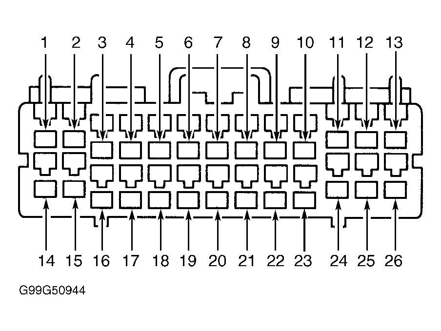 - Turn ignition off. Remove horn relay from engine compartment fuse/relay box. Disconnect SEC/timer module Gray 26-pin connector C2032B. Measure resistance of Yellow wire between horn relay connector socket No. 1 in fuse/relay box and SEC/timer connector C2032B terminal No. 6. See Figure