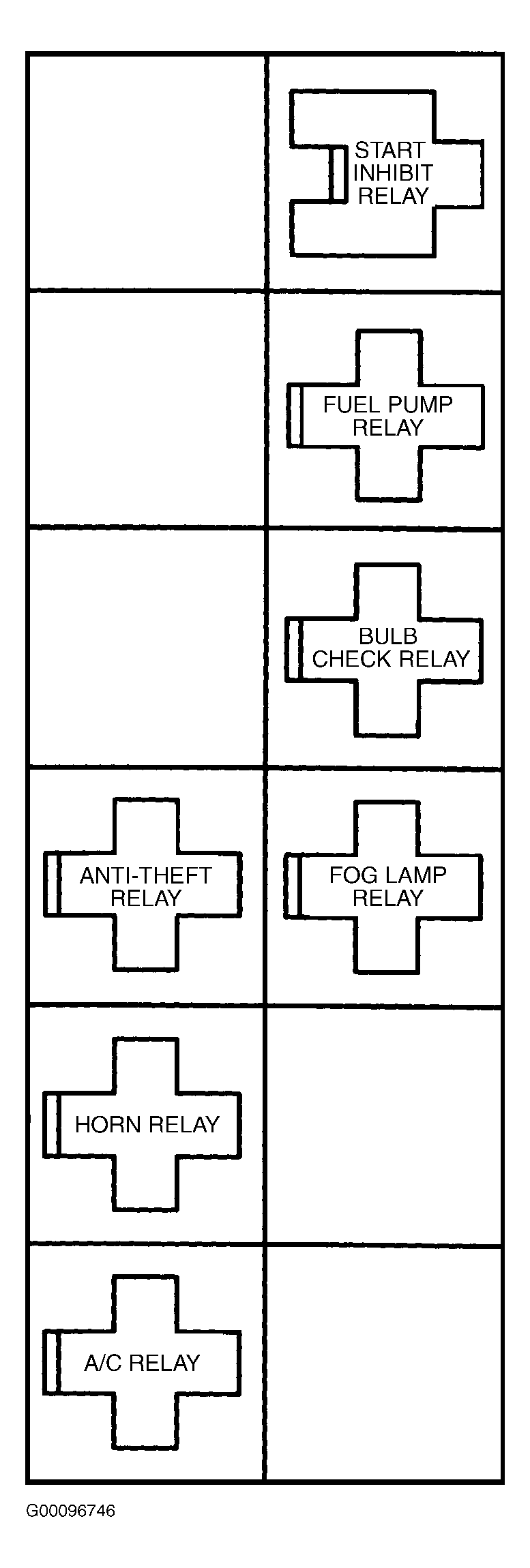 Turn ignition off. Remove A/C relay from left side engine compartment relay block. See Figure. Turn ignition on. Using DVOM, measure voltage between chassis ground and PWR circuit at A/C relay cavity No. 2. See Figure. If voltage is more than 10 volts, go to next step. If voltage is 10 volts or less, repair open in PWR circuit. See WIRING DIAGRAMS in AUTOMATIC A/C-HEATER SYSTEMS - VILLAGER or MANUAL A/C-HEATER SYSTEMS - VILLAGER article. - 2) Perform A/C Relay Click Test