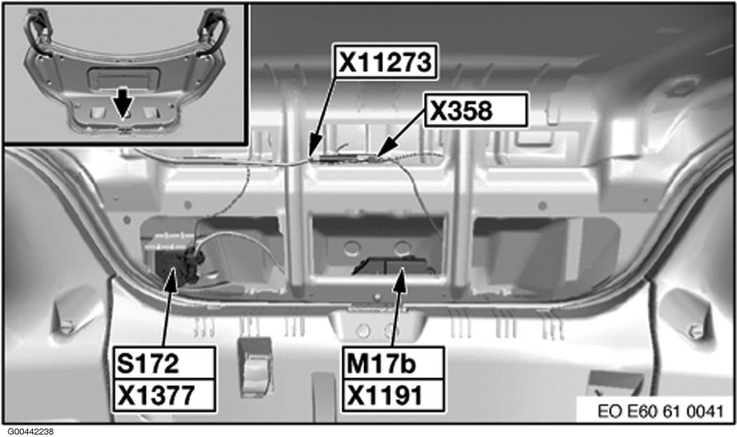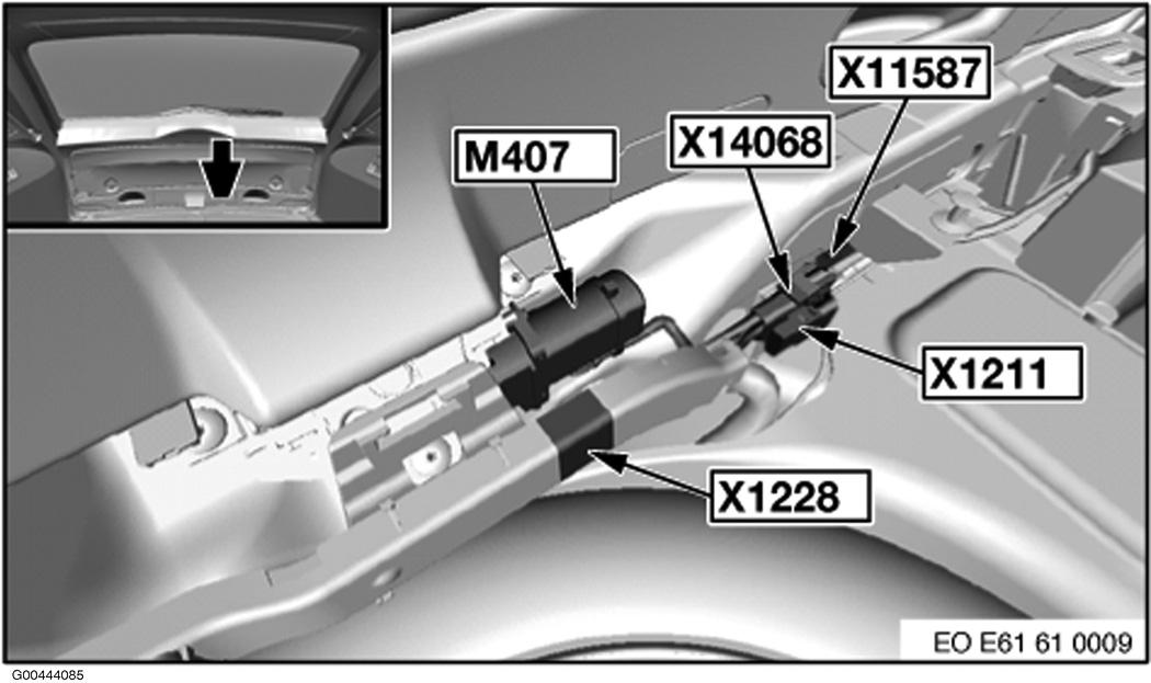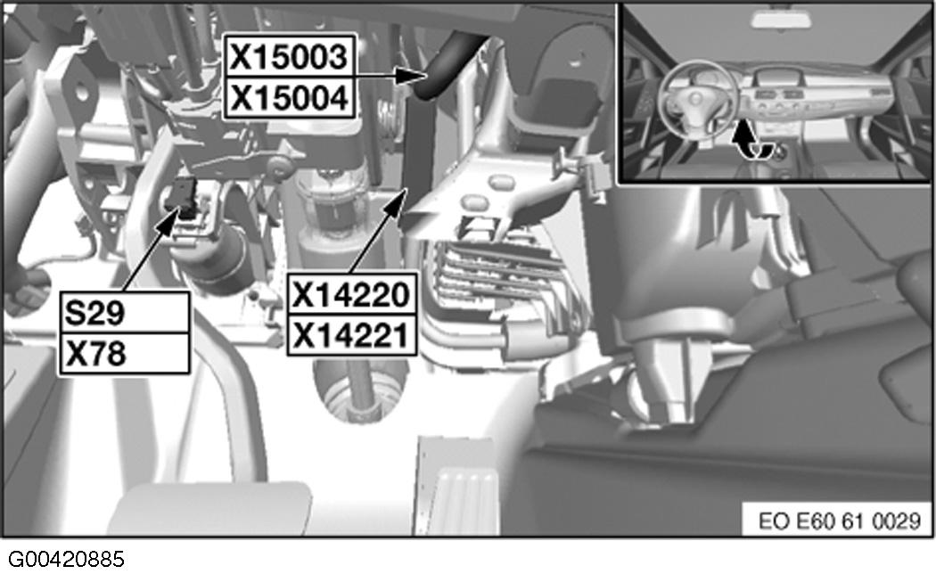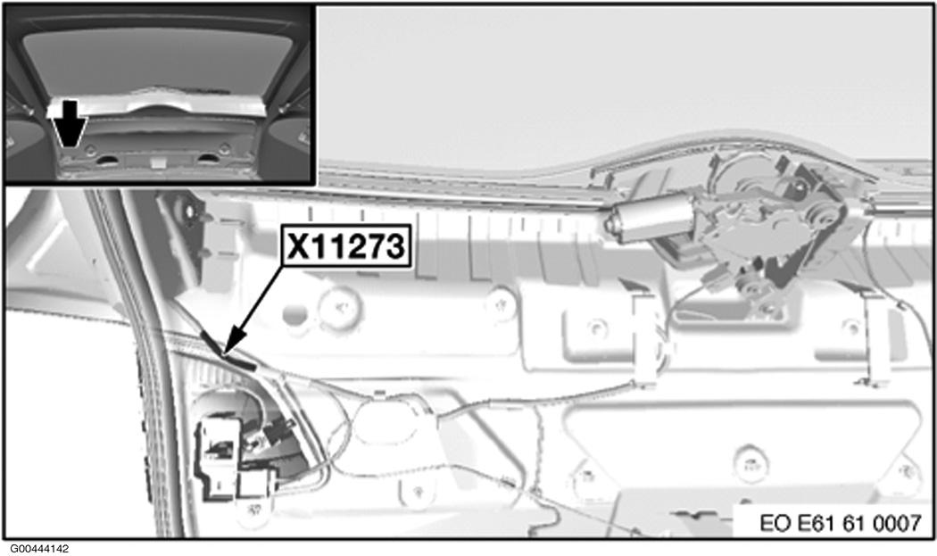 | X13725 (Except M5) | Right front footwell. See Figure. |