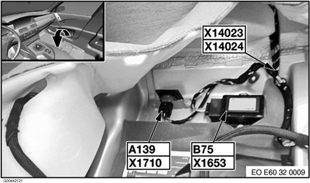 | X13724 (Except M5) | Right front footwell. See Figure. |