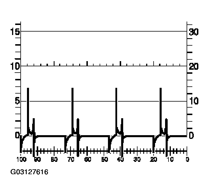 Evaluation of ignition voltage peaks at idle speed (this example shows an engine with 4 cylinders). See Fig 2.