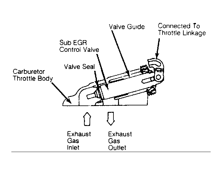 The sub EGR control valve opens and closes in unison with the movement of the throttle valve due to a linkage. See Fig 1 . This is done to closely modulate EGR flow controlled by the EGR control valve in response to the throttle valve opening.