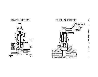 Disconnect vacuum hoses from valve. Connect vacuum pump to valve nipple. See Fig 1 . With engine coolant temperature at 113°F (45°C) or less, vacuum should leak when applied. With engine coolant temperature at 176°F (80°C) or more, vacuum should hold when applied.