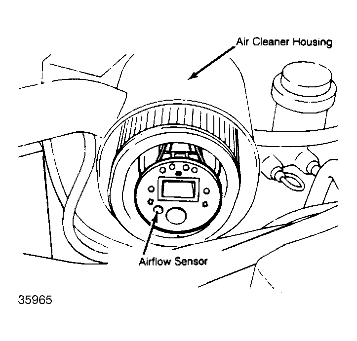 Mounted in air cleaner assembly, this sensor measures airflow rate. See Fig 1 . The ECU uses airflow sensor information to control fuel delivery and secondary air management. On Starion intercooled models, an atmospheric pressure pick-up nipple (leading to atmospheric pressure switching solenoid valve) has been added to air cleaner.
