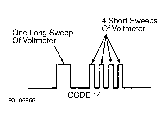 - For example, one long sweep followed by a short pause followed by 4 short sweeps would indicate a Code 14. See Fig 2. After recording abnormal codes, perform necessary repair according to appropriate diagnostic fault chart. See Figure.
