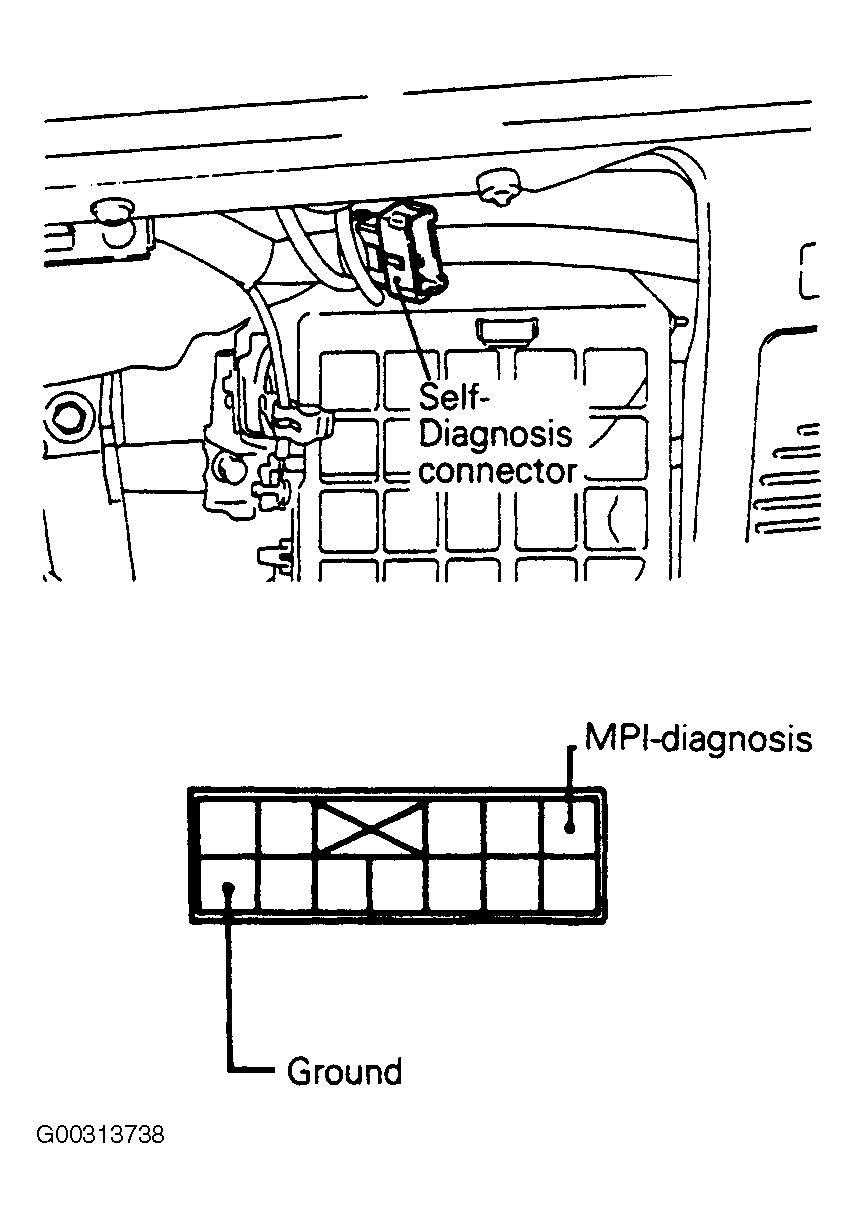 - Connect analog-type voltmeter between ground terminal and self-diagnosis output terminal of diagnosis connector. See Fig 1 .