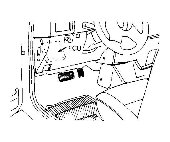Electronic Control Unit (ECU) Behind left side of dash, near steering column. See Figure .