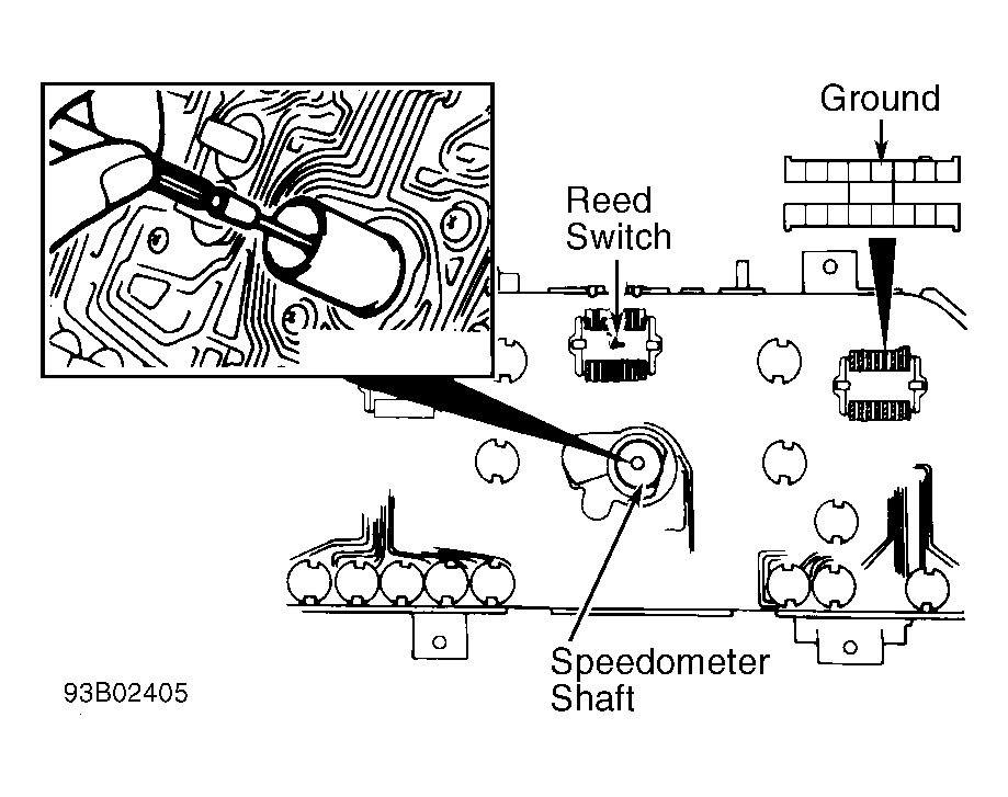 - Use DVOM to check continuity between indicated VSS terminals. See Fig 1 . Ensure continuity pulses on and off 4 times per speedometer shaft revolution. If continuity is not as specified, replace VSS. If continuity is as specified, go to step 4).