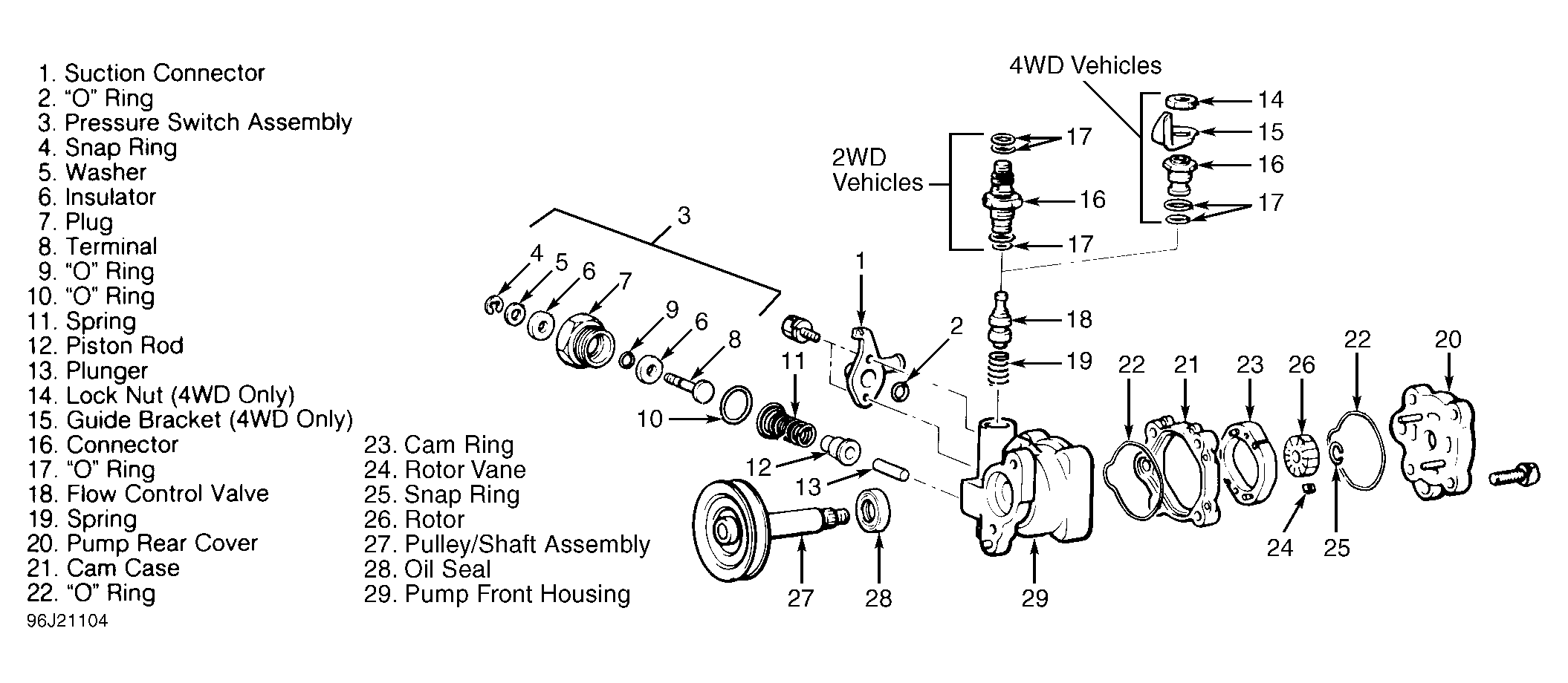 Fig 1: Exploded View Of Power Steering Pump (Typical)