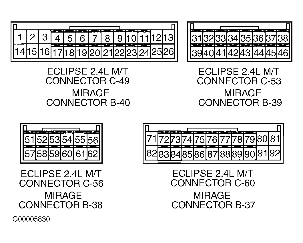Fig 17: Identifying ECM Connector Terminals (Eclipse 2.4L M/T & Mirage)