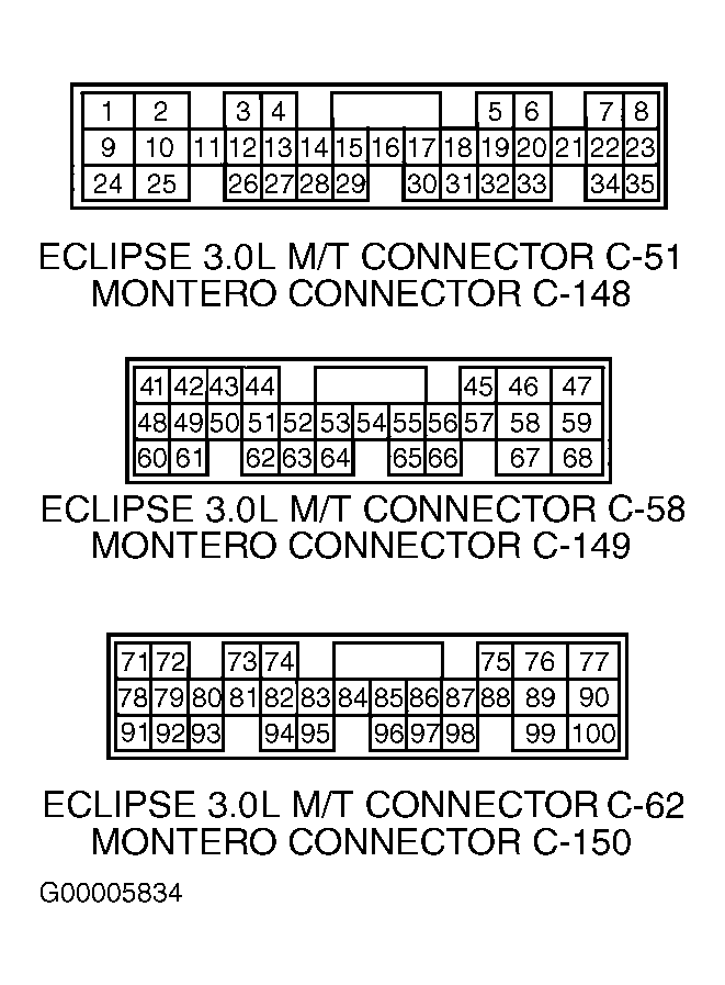 Fig 18: Identifying ECM Connector Terminals (Eclipse 3.0L M/T & Montero)