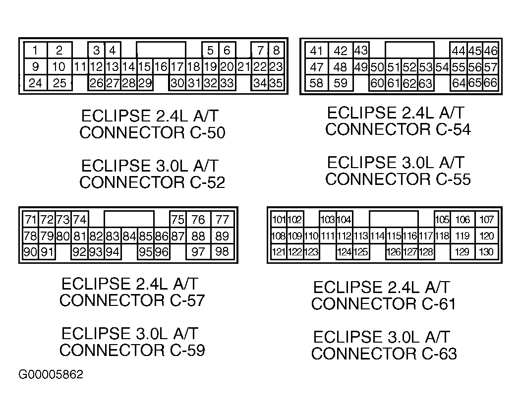 Fig 47: Identifying PCM Connector Terminals (Eclipse 2.4L A/T & 3.0L A/T)