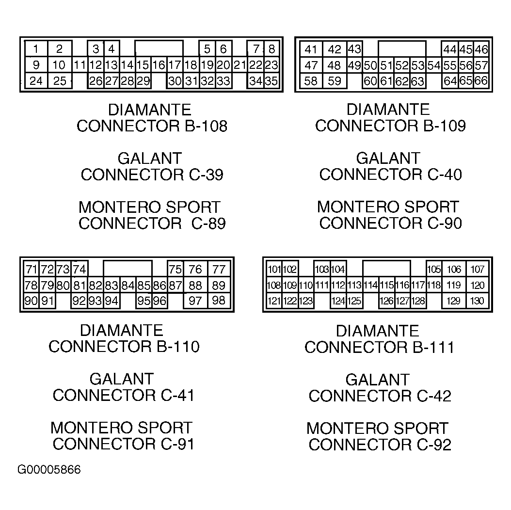 Fig 48: Identifying PCM Connector Terminals (Diamante, Galant & Montero Sport)