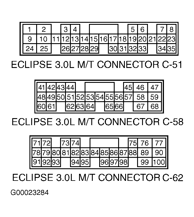 - Check ECM connectors C-58 and C-62 or PCM connectors C-55 and C-59 for loose, damaged or corroded terminals. If problem exists, repair connector, then go to step 14 . If problem does not exist, go to next step.