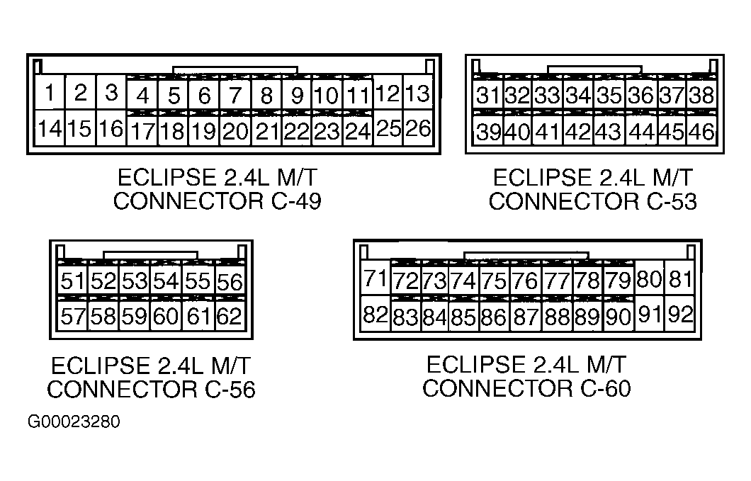 - Turn ignition off. Check ECM connector C-60 or PCM connectors C-54 and C-57 for loose, damaged or corroded terminals. If problem exists, repair connector, then go to step 9 . If problem does not exist, go to next step.