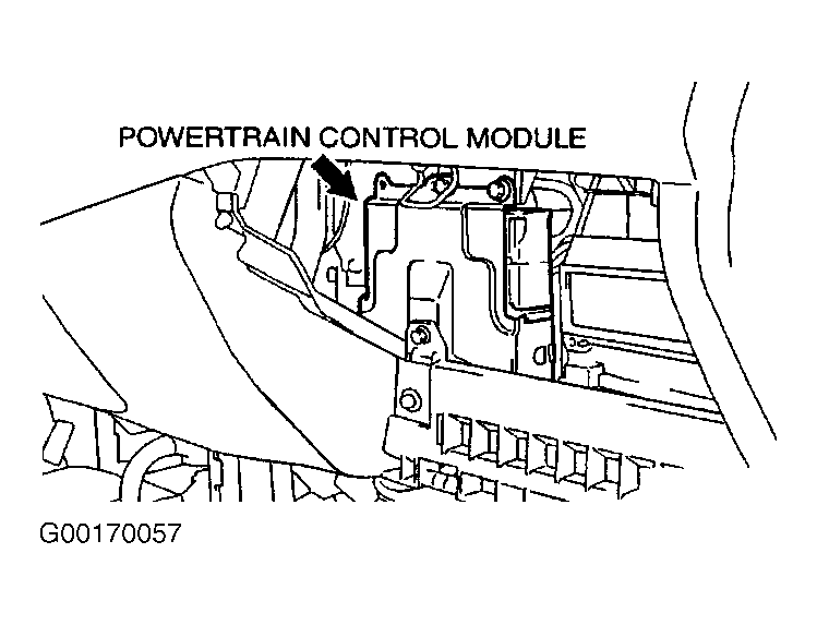Powertrain Control Module (PCM) is located under center of instrument panel, behind glove box door. See Figure. To remove and install PCM, see Fig 1.