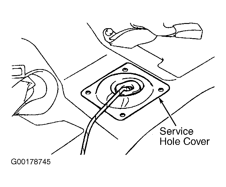 2. While pulling rear seat stopper, lift up and remove rear seat cushion. See Fig 1. Remove fuel pump module access hole cover. See Fig 2. Working through access hole, cover fuel hose with a shop towel and disconnect fuel hoses at fuel pump module.