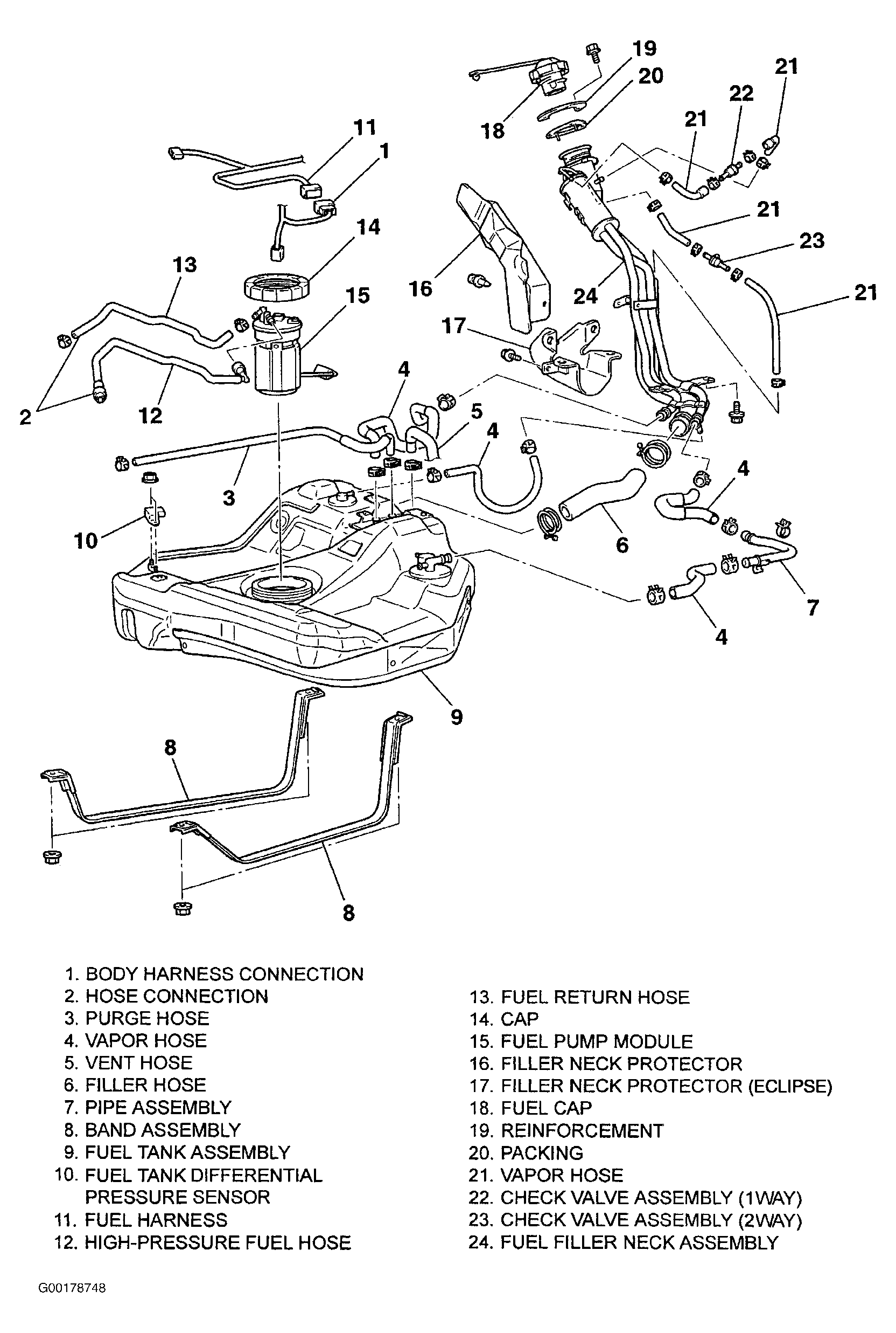 Fig 3: Exploded View Of Fuel Tank & Related Components (Eclipse & Galant)