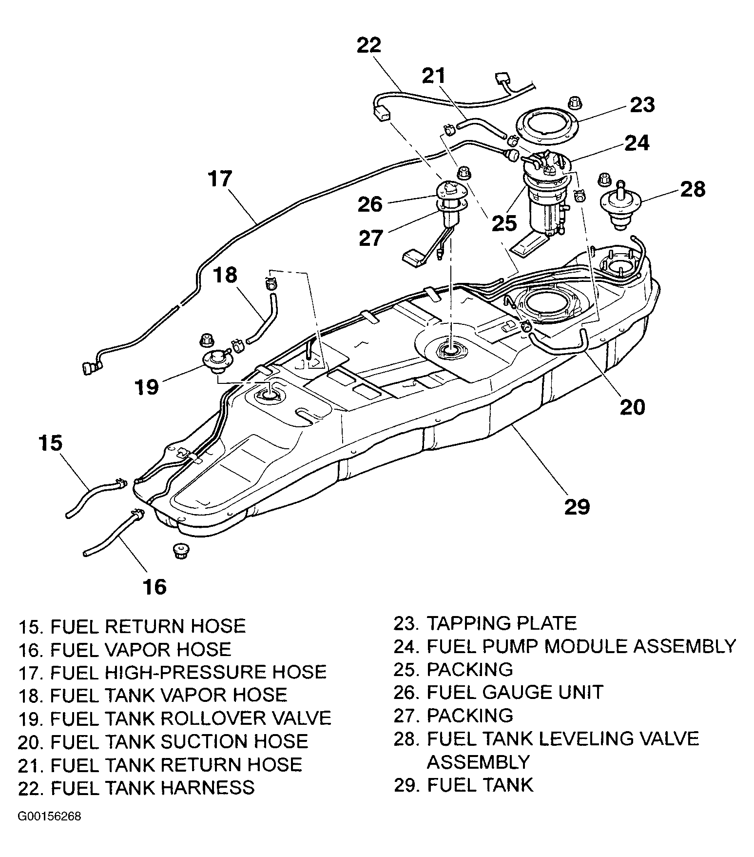 - Fold second seat to gain access to fuel pump module access hole cover. See Figure. Remove access hole cover (upper side) and packing. Remove access hole cover (lower side) and packing. Disconnect fuel pump module harness connector. Disconnect fuel high-pressure fuel hose and fuel tank hose. Unscrew mounting nut to remove fuel pump module. See Figure.