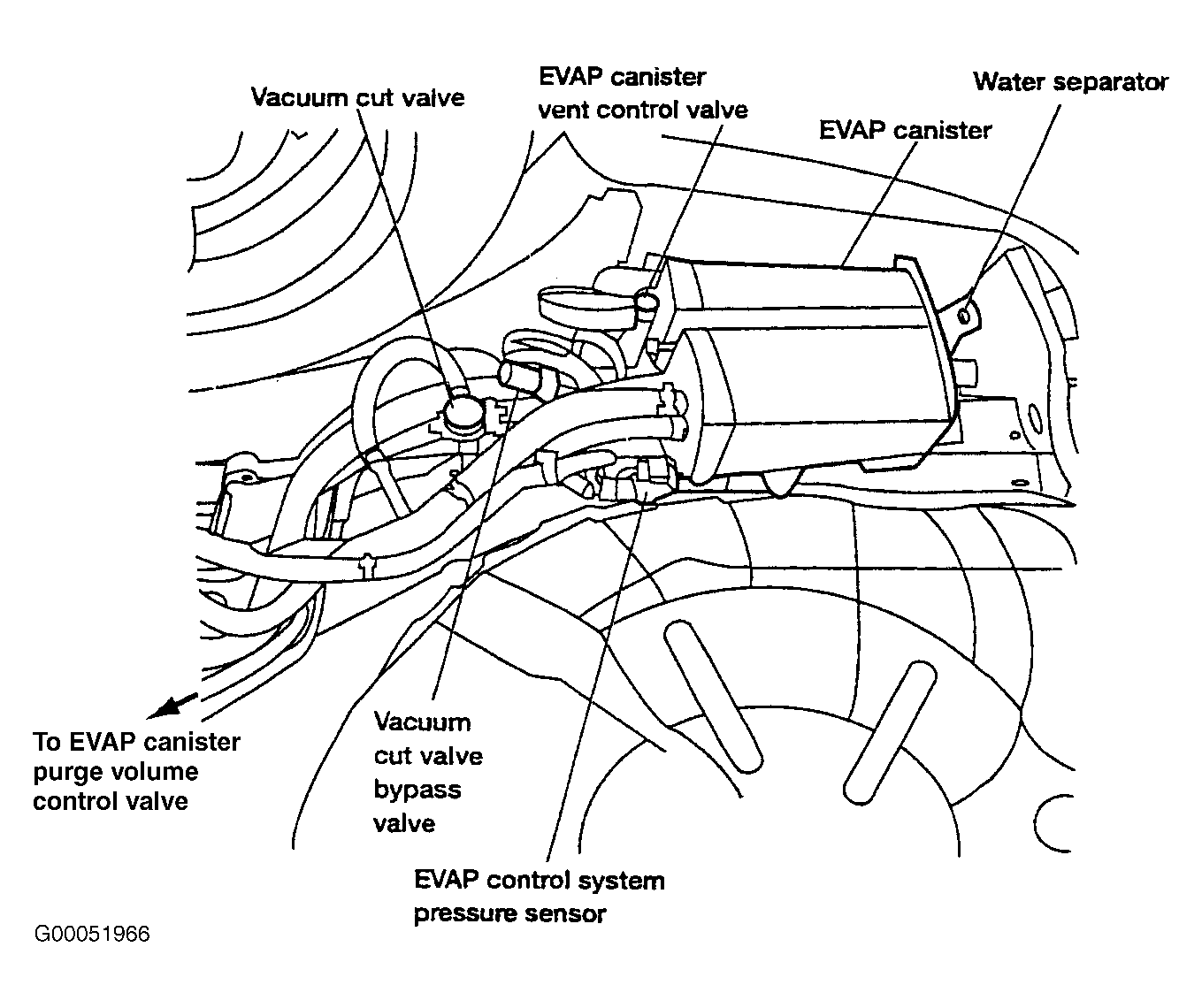 Fig 51: Locating EVAP System Components Under Vehicle View (Altima)