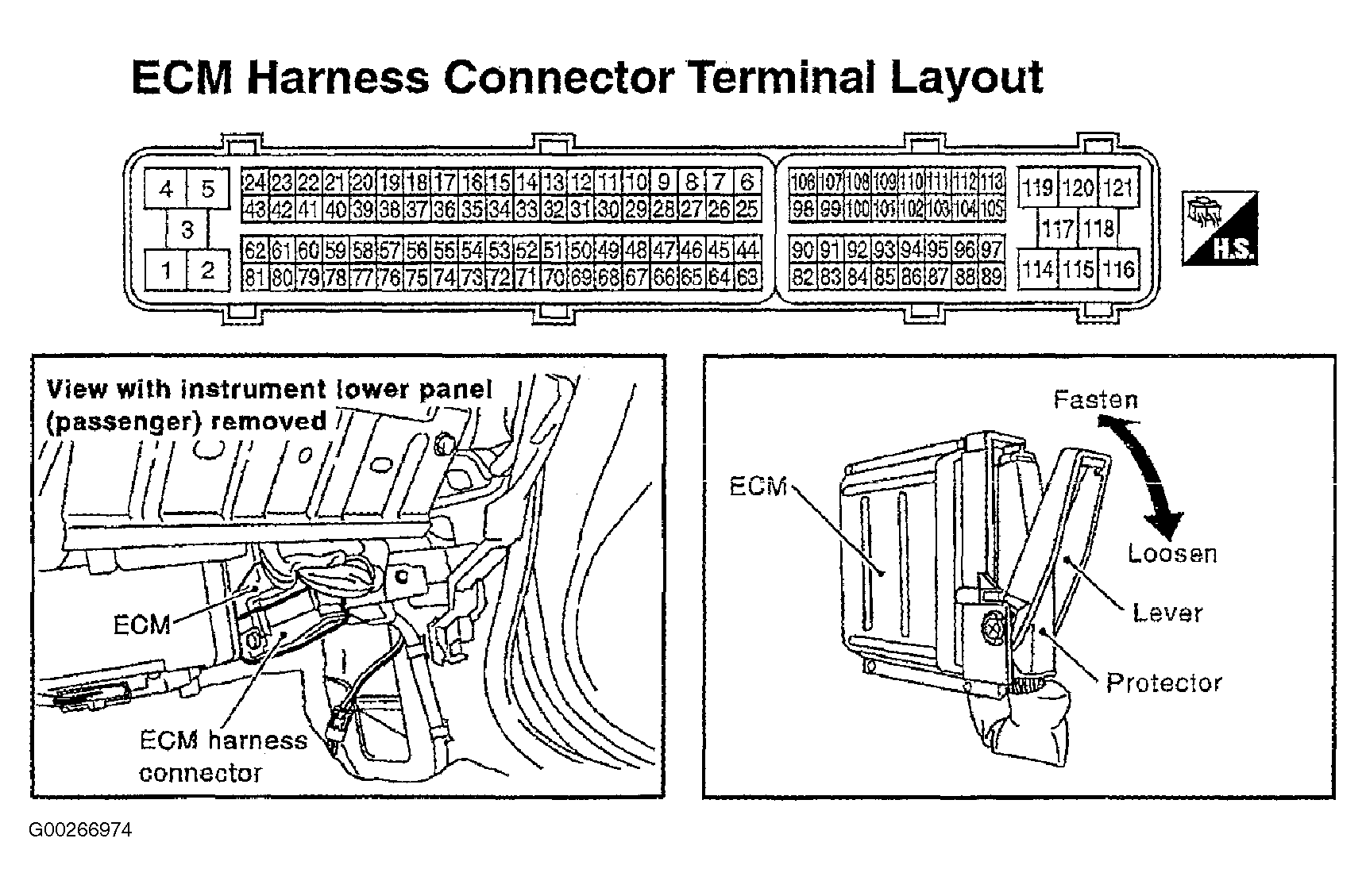 For engine control system component locations, see Figure-Figure . For ECM location, connector and terminal view, see Fig 9. For removal and installation of components, see appropriate REMOVAL & INSTALLATION article.