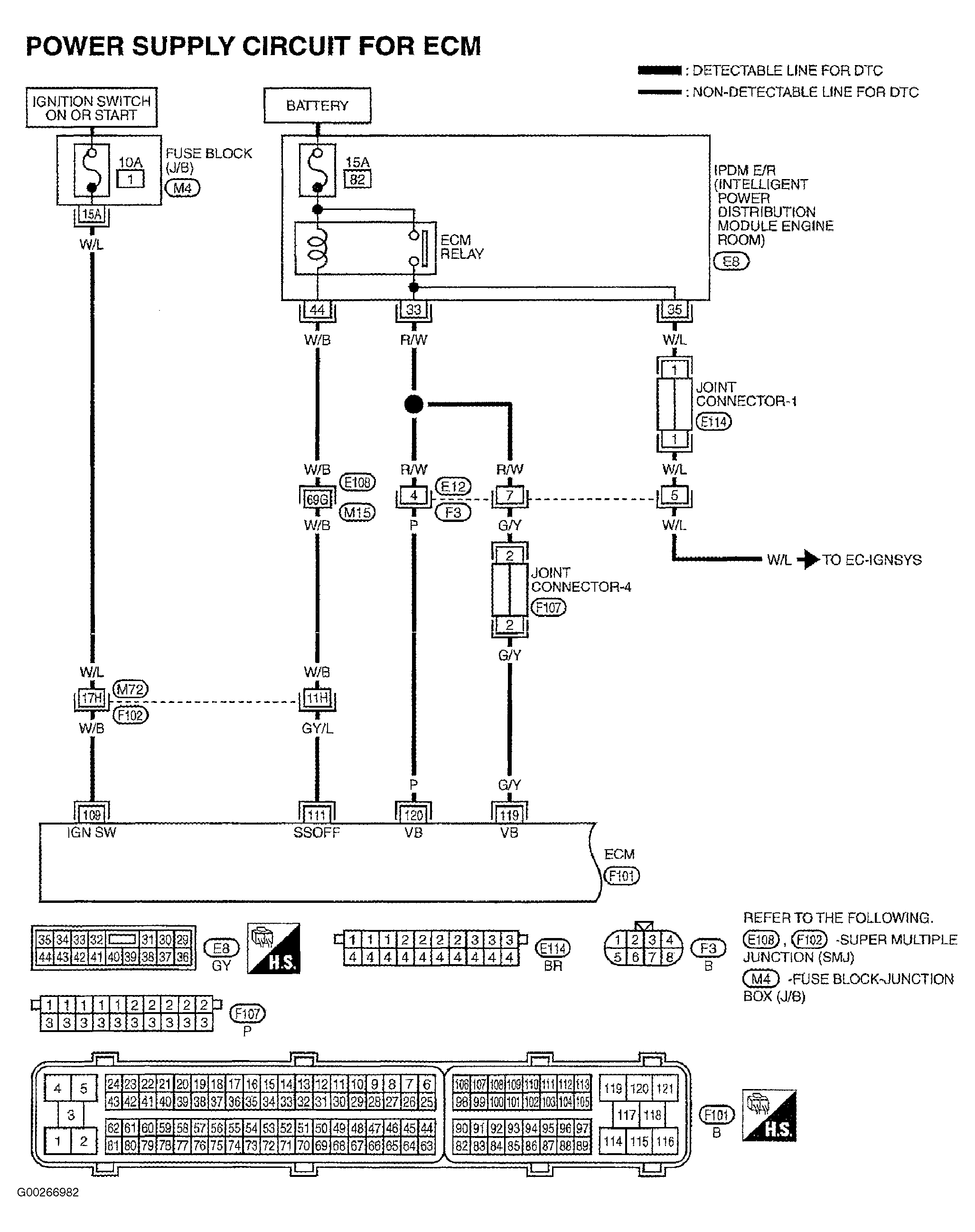 For ECM power and ground circuit wiring diagram and diagnostic procedure, see Fig 1-Fig 8 . If no problem is found, check ignition signal circuit. See IGNITION SIGNAL CIRCUITS under IGNITION SYSTEM. For intermittent diagnosis, see INTERMITTENTS in TROUBLE SHOOTING - NO CODES article.