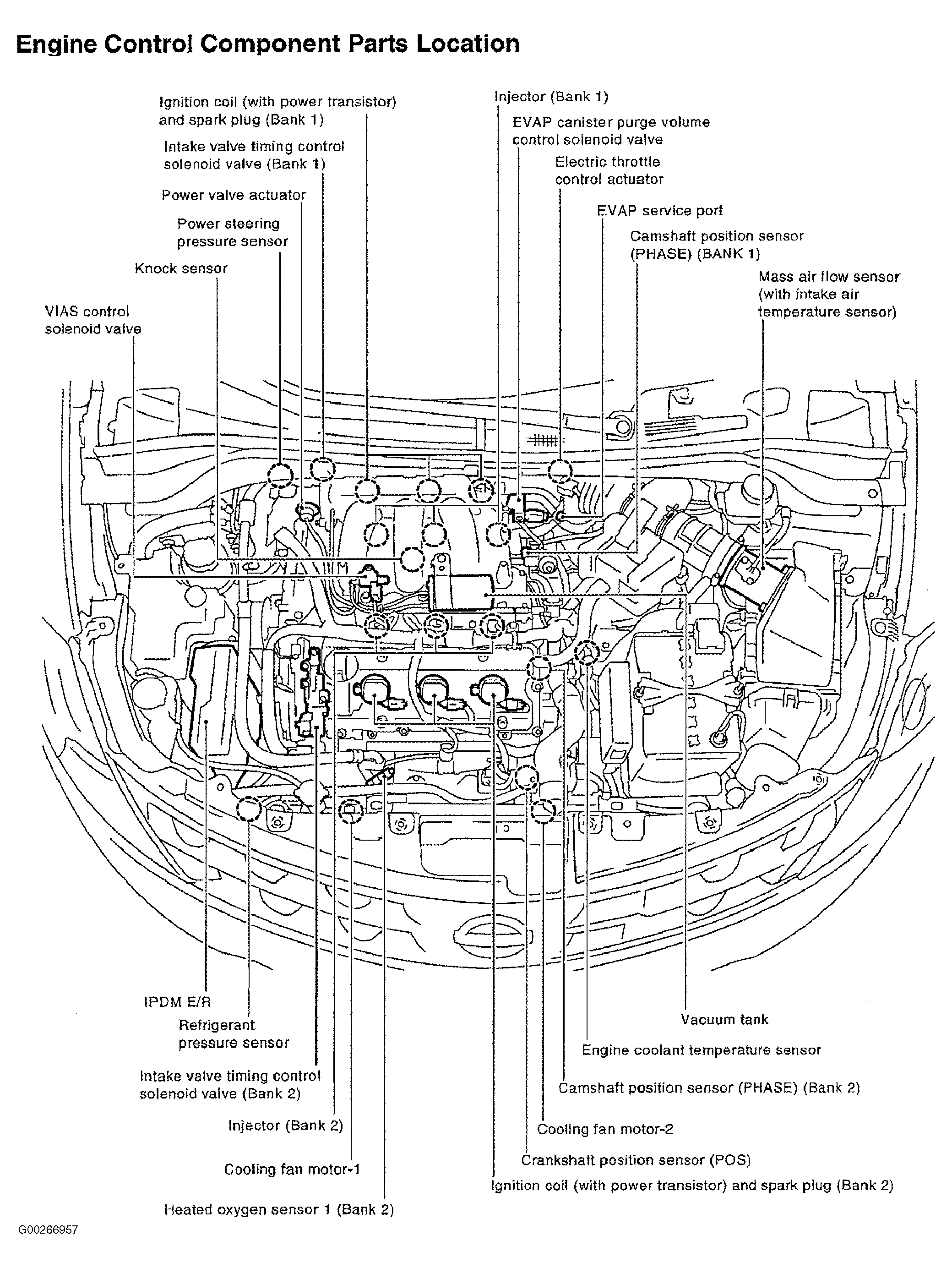 For engine control system component locations, see Figure-Figure . For ECM location, connector and terminal view, see Figure. For removal and installation of components, see appropriate REMOVAL & INSTALLATION article.
