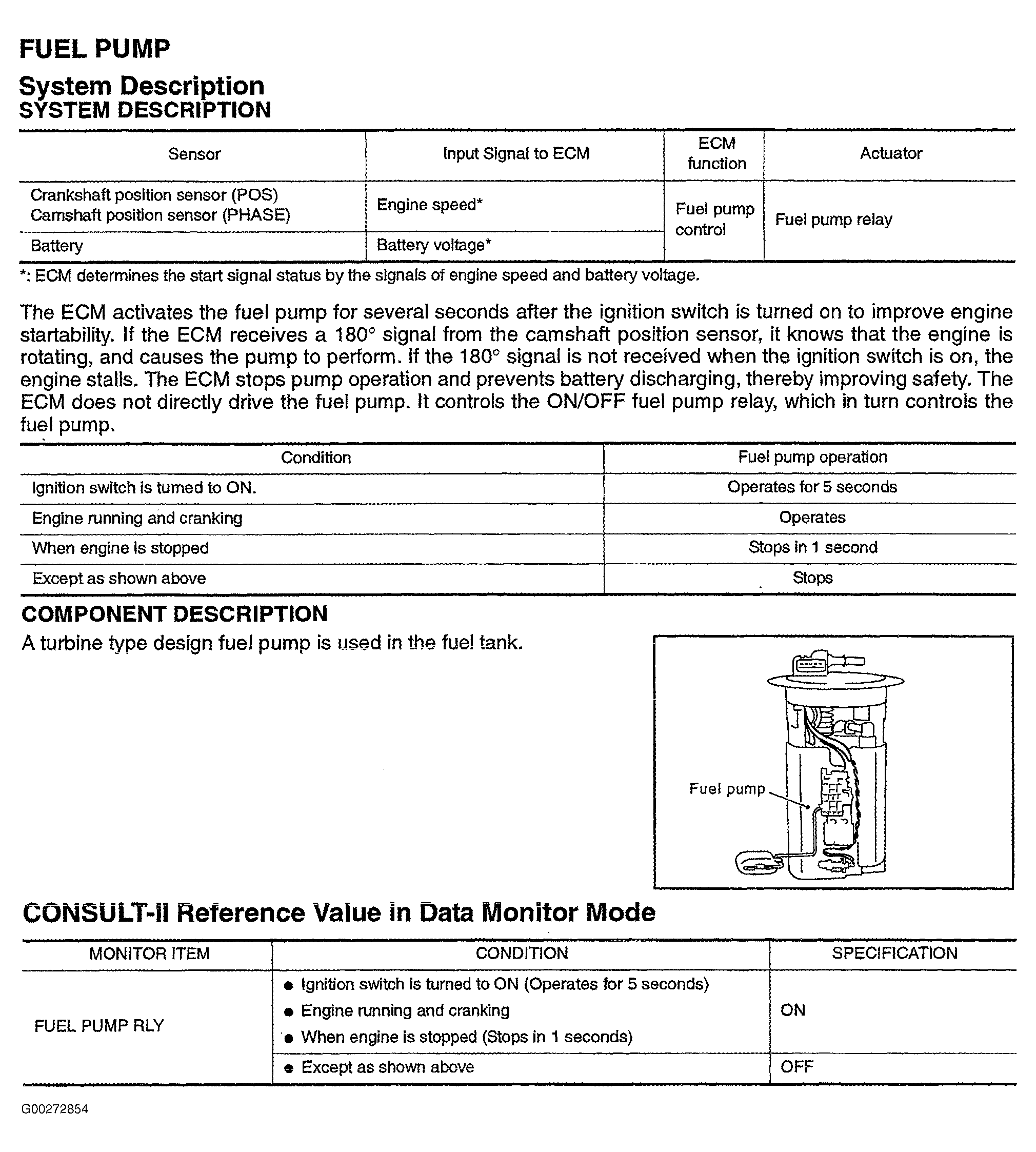 Home >> Mitsubishi >> 2003 >> Lancer Evolution >> Repair and Diagnosis >> External Pages >> Different car >> Section 85 (Engine Controls - System & Component Testing) >> Fuel System >> Fuel Delivery >> Fuel Pump Control System (Sentra 1.8L)